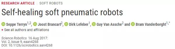 受許多生物體的啟發(fā),軟機(jī)器人幾乎完全由柔性軟材料制成,使其適合于不確定的動態(tài)任務(wù)環(huán)境中的應(yīng)用,包括人機(jī)交互。它們固有的柔韌性可以吸收沖擊并保護(hù)它們免受機(jī)械沖擊。但是,用于其構(gòu)造的軟材料極易受到損壞,例如在操作中不受控制和不可預(yù)測的環(huán)境中存在的尖銳物體所造成的割傷和穿孔。針對該問題,比利時(shí)布魯塞爾自由大學(xué)的Bram Vanderborght團(tuán)隊(duì)利用了材料的自愈性能,構(gòu)造了軟機(jī)器人自修復(fù)彈性體,開發(fā)出了可自我修復(fù)的軟氣動執(zhí)行器的三種應(yīng)用:軟夾持器,軟手和人造肌肉。該材料中熱可逆的共價(jià)網(wǎng)絡(luò)使其具有治愈微觀和宏觀損傷的能力,而且在損傷處,沒有弱點(diǎn)形成,并且執(zhí)行器的全部性能在愈合后幾乎完全恢復(fù)。
