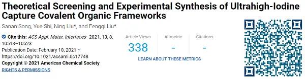6. ACS Appl. Mater. Interfaces.: 超高碘捕獲能力的共價有機框架的理論篩選和實驗合成