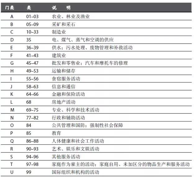 下圖為《國際標準行業(yè)分類》中第二部分第一章總體結(jié)構(gòu)中將單個類別歸并,成為以下21個門類: