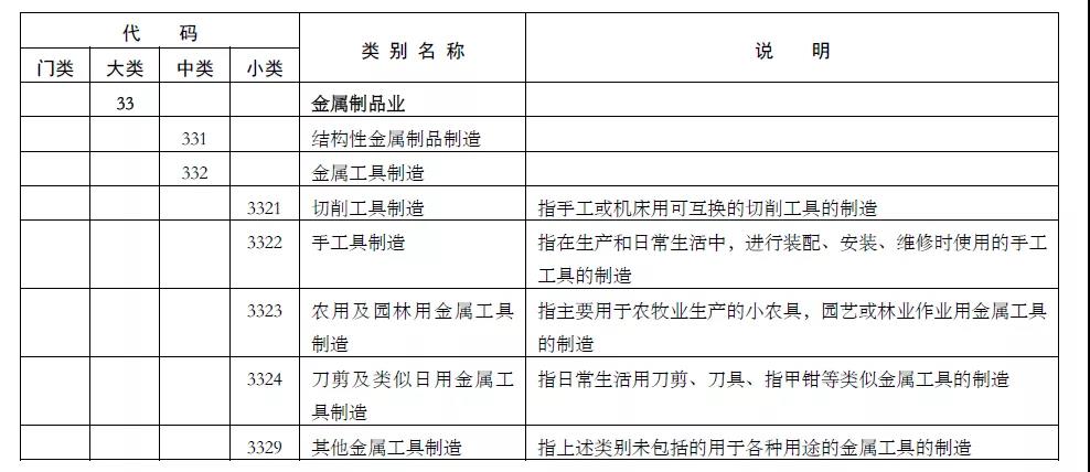 再比如二級分類(大類)中33是金屬制品業(yè),其下面的三級分類(種類)332金屬工具制造中,3321切削工具制造就已經(jīng)是該分類目錄中第四級的最終分類了。然而,對于業(yè)內(nèi)的從業(yè)者來說,這個分類實在是太粗糙了。