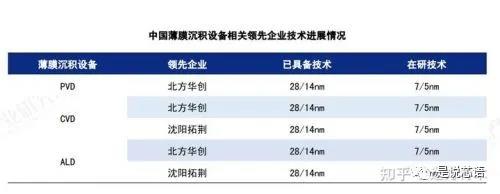 薄膜沉積設備領域最強的是美國和日本,都可以搞定5nm技術,兩國合計占據(jù)70~80%左右的市場份額。目前,中國國內的存量薄膜沉積設備98%來自于進口,國產(chǎn)化率僅為2%,因為中國以前造不出來。但最近幾年,中國取得了技術突破,最先進廠商為北方華創(chuàng)。目前,中國28nm級別的設備已經(jīng)成功實現(xiàn)銷售,14nm設備正在生產(chǎn)線進行磨合驗證。