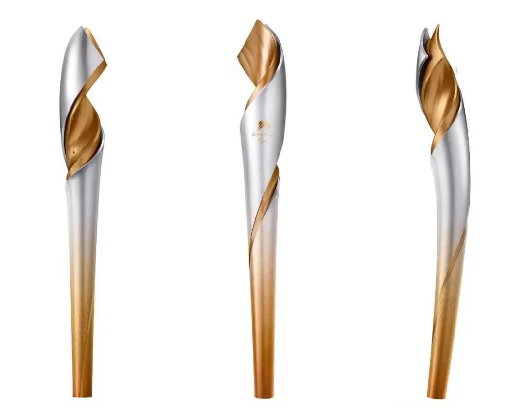 火炬的整體外觀與北京2008年奧運(yùn)會開幕式主火炬塔形態(tài)相呼應(yīng)?;鹁嬉韵樵萍y樣“打底”,自下而上從祥云紋樣逐漸過渡到剪紙風(fēng)格的雪花圖案,旋轉(zhuǎn)上升,如絲帶飄舞,體現(xiàn)了藝術(shù)設(shè)計(jì)與科技創(chuàng)新的完美融合。