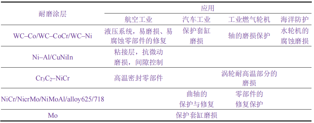 ↓↓不同熱噴涂耐磨涂層的應用領域