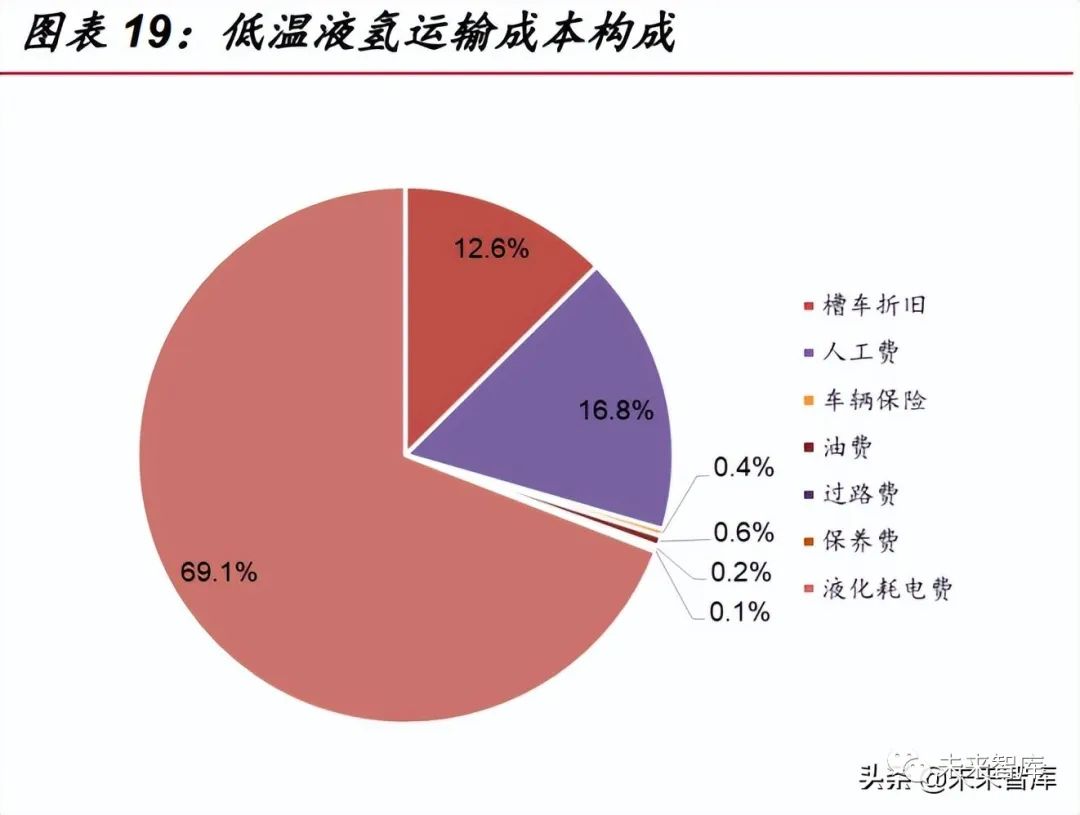 從低溫液氫運輸成本構(gòu)成來看,液化成本占總成本近 70%,是低溫液氫運輸成 本主要構(gòu)成,因此降低低溫液氫運輸成本首要解決的是降低氫氣液化成本。