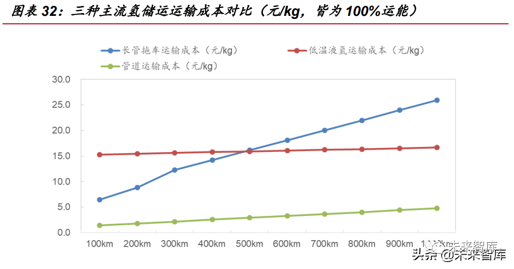 隨著大規(guī)模、長距離運氫需求的增加,低溫液氫輸送的優(yōu)勢將會顯現(xiàn),并成為中長 運距氫儲運的主流方式。從氫能發(fā)展更遠(yuǎn)期來看,氫能產(chǎn)業(yè)發(fā)展將趨于成熟,用氫 需求將實現(xiàn)大規(guī)?;亿呌诜€(wěn)定,屆時管道輸氫綜合優(yōu)勢將成為長距離氫運輸最 佳選擇。