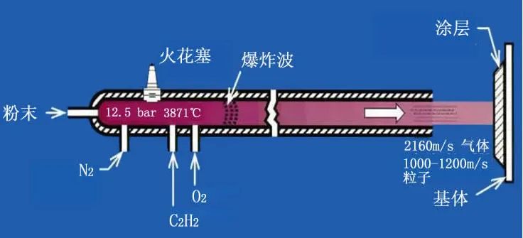 爆炸噴涂技術(shù)的原理是利用氣體爆炸后產(chǎn)生的能量將粉末原料加熱熔化,使其以極高速度沉積在工件表面,形成堅(jiān)固的涂層。該技術(shù)在航空發(fā)動(dòng)機(jī)等關(guān)鍵零部件修復(fù)和耐磨防護(hù)中表現(xiàn)出無法替代的優(yōu)勢,受到世界范圍的研究和重視,已成為生產(chǎn)高質(zhì)量耐磨涂層最有效的技術(shù)。