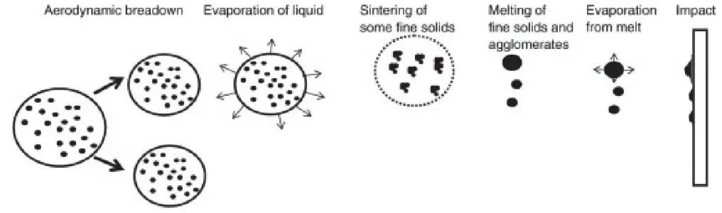 影響熱噴涂涂層性能的主要因素是原料在噴涂焰流中的熔融狀態(tài)(溫度)和飛行速度(微粒的動(dòng)能)。在大氣等離子噴涂之后出現(xiàn)的各種熱噴涂技術(shù),無一不是通過提高微粒溫度或速度來獲得性能優(yōu)異的涂層。此外,由于等離子噴涂、爆炸噴涂等技術(shù)無法使用納米粉體進(jìn)料,在制備納米結(jié)構(gòu)涂層時(shí)只能通過造粒將其制為微米級粉體用于噴涂,噴涂工藝和涂層性能均受到限制。因此,研究人員還開發(fā)了懸浮液等離子噴涂(SSPS),以便獲得特定組織的納米結(jié)構(gòu)涂層。