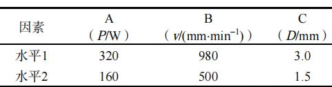 表 1 激光淬火正交試驗(yàn)的因素水平