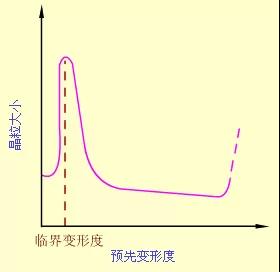 (2)預(yù)先變形度 變形度的影響主要與金屬變形的均勻度有關(guān)。變形越不均勻, 再結(jié)晶退火后的晶粒越大。變形度很小時(shí),因不足以引起再結(jié)晶,晶粒不變。當(dāng)變形度達(dá)到2~10%時(shí),金屬中少數(shù)晶粒變形,變形分布很不均勻,所以再結(jié)晶時(shí)生成的晶核少,晶粒大小相差極大,非常有利于晶粒發(fā)生吞并過程而很快長大,結(jié)果得到極粗大的晶粒。使晶粒發(fā)生異常長大的變形度稱作臨界變形度。生產(chǎn)上應(yīng)盡量避免在臨界變形度范圍內(nèi)的塑性變形加工。超過臨界變形度之后,隨變形度的增大,晶粒的變形更加強(qiáng)烈和均勻,再結(jié)晶核心越來越多,因此再結(jié)晶后的晶粒越來越細(xì)小。但是當(dāng)變形度過大(約≥90%)時(shí), 晶??赡茉俅纬霈F(xiàn)異常長大,一般認(rèn)為它是由形變織構(gòu)造成的。